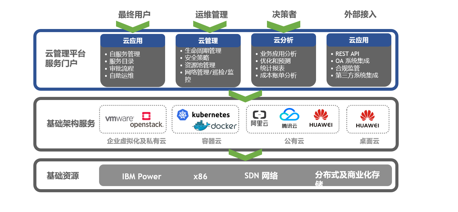 多云管理平台可以帮助企业统一管理公有云和私有云,构建统一的多云平台,实现跨云跨国跨区域的业务系统部署,提升云系统全局的性能,满足业务灵活性需求,并可结合各云服务提供商的优势、实现云平台成本的优化。
